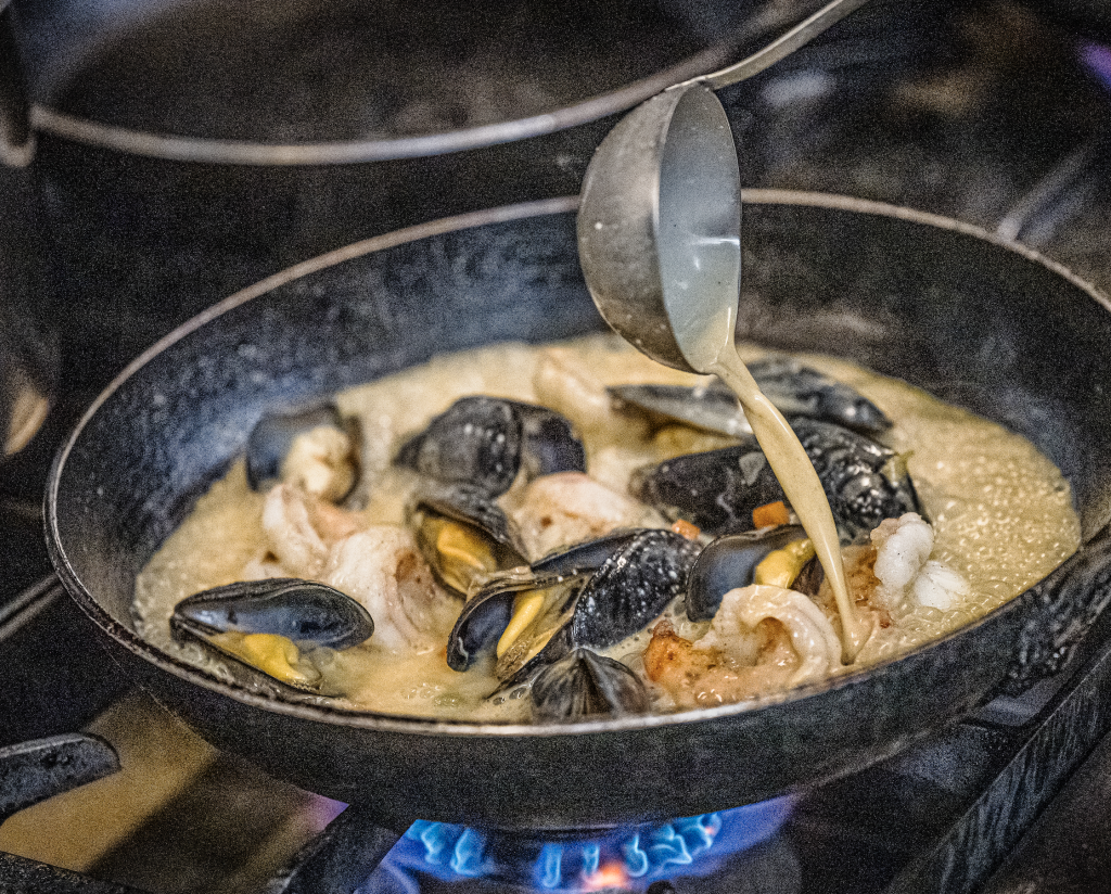 You’ll come back for the atmosphere and the old café setting (1936) as much as for the quality of the food, which never disappoints. The kitchen serves up local specialities with an authentic flavour: “soles meunières”, mussels, prawn croquettes, skate wing in butter, etc. The atmosphere is relaxed and the service efficient. One of the keys behind the success of this well-known fish market establishment? The professionalism of Adrien and Jean-Philippe, the two brothers who come from a family of well-known restaurateurs in the area. (« Le Petit Futé »)
